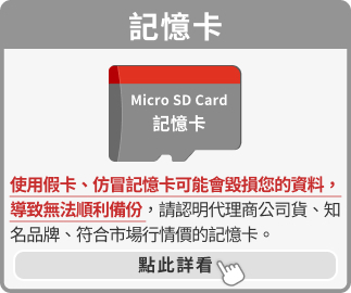 ! 請先確認記憶卡可正常使用且有足夠的儲存空間 !