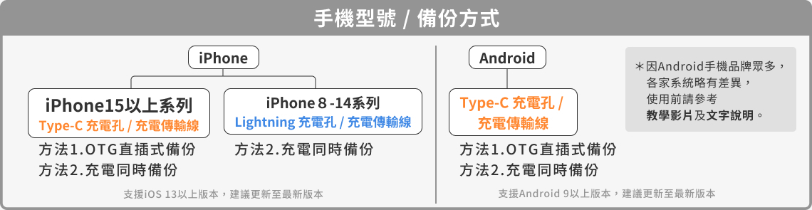 (1)備份方塊『充電備份』:一定要充電才會進行備份,請使用有傳輸功能的充電線或原廠充電線。