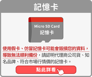 *請注意假卡/仿冒卡可能會毀損檔案、無法備份,請認明公司貨或符合市場行情價的記憶卡。