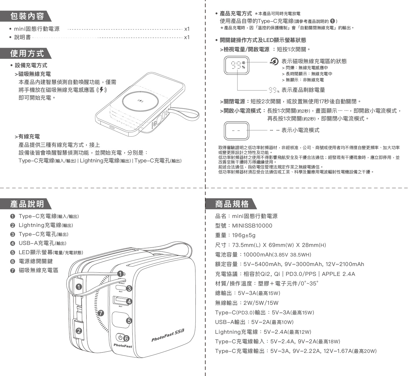 SSB mini充 電池容量為 10000 mAh,額定容量為 5400mAh。
