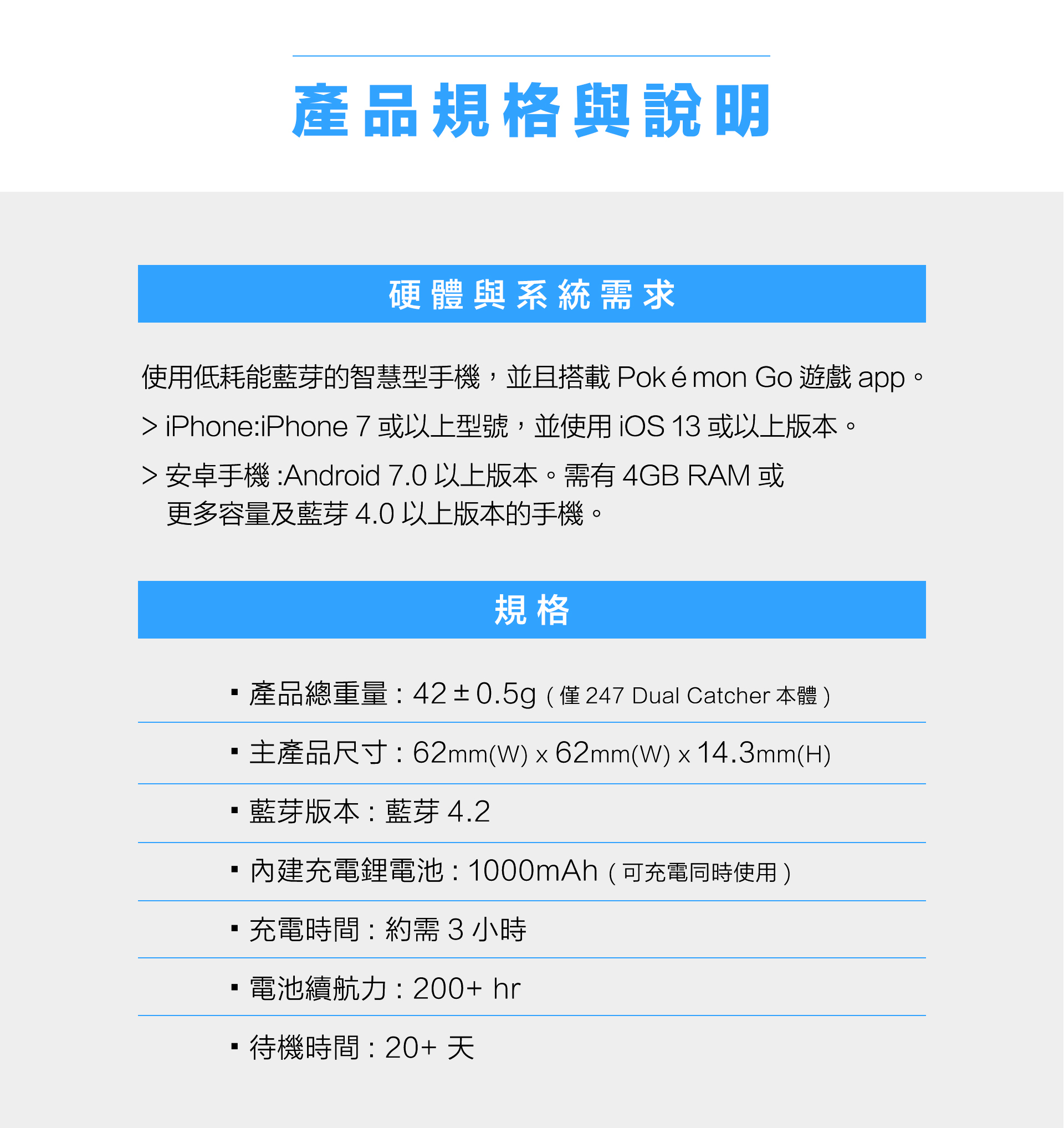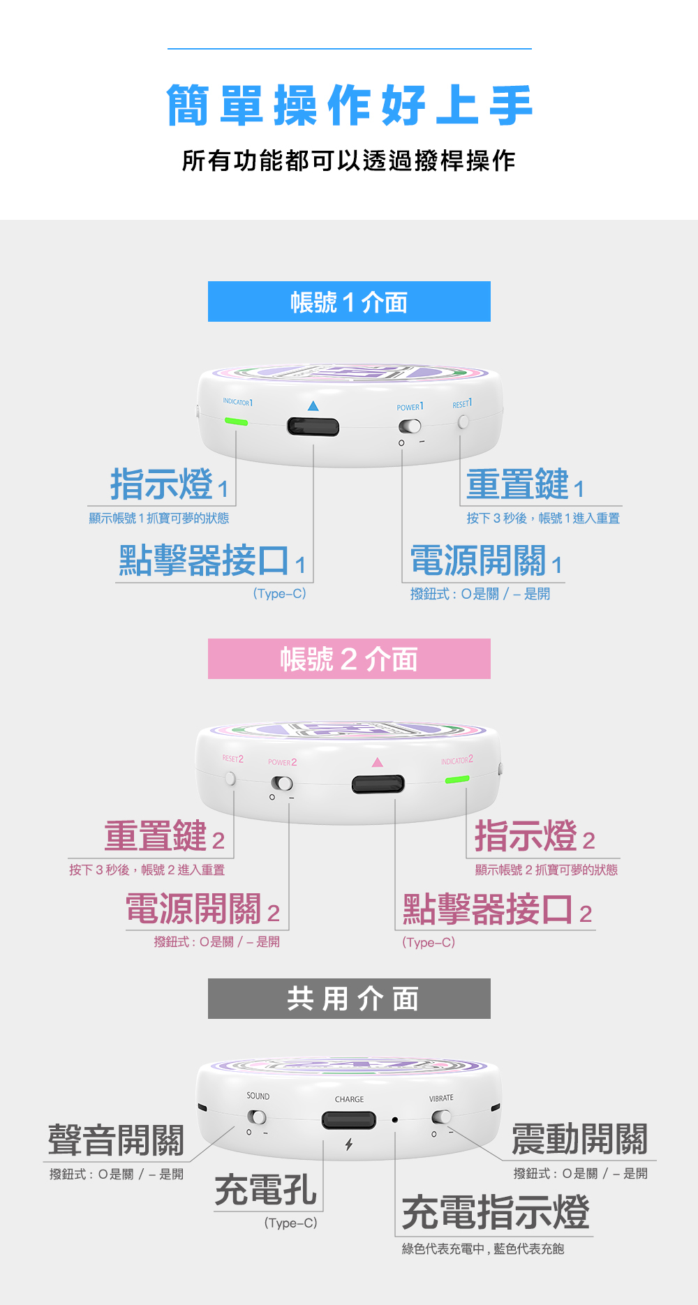 ▪ 內建LED燈號顯示,快速判讀抓寶狀態