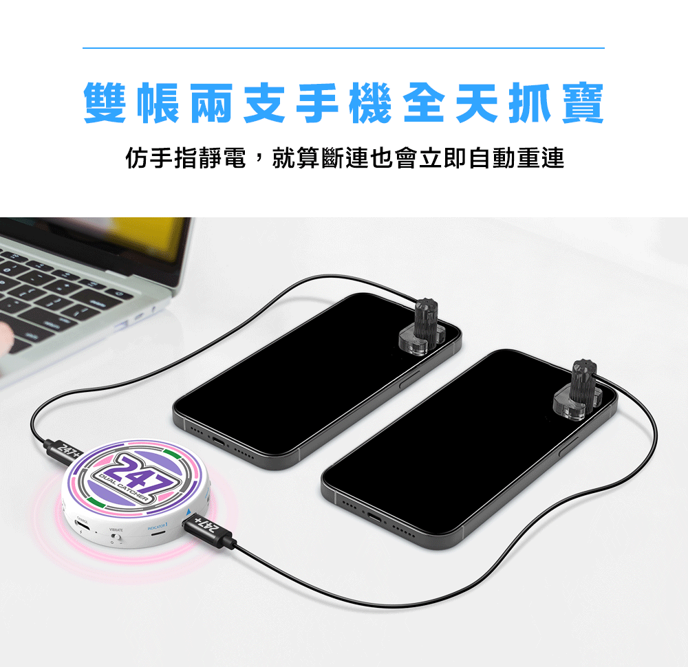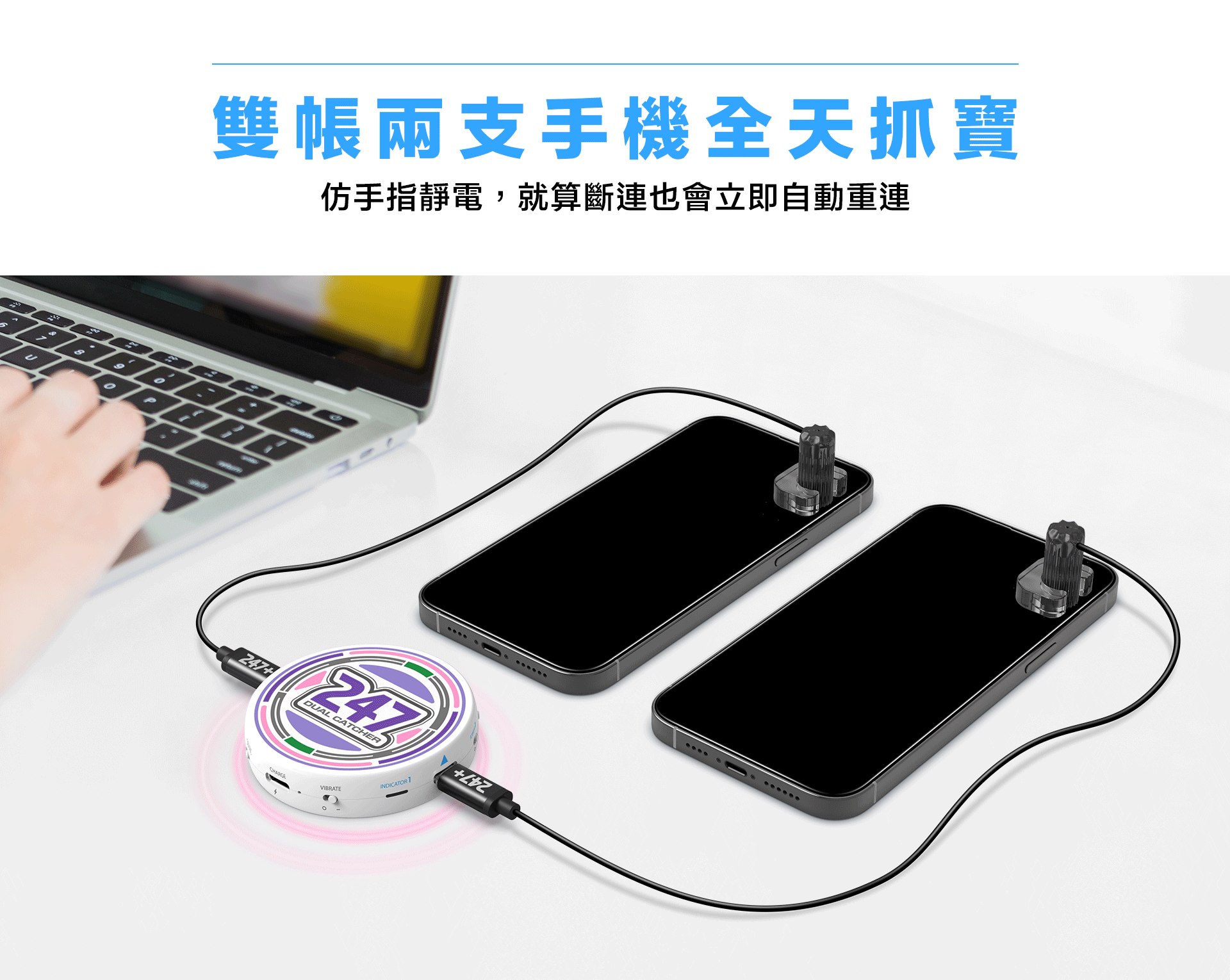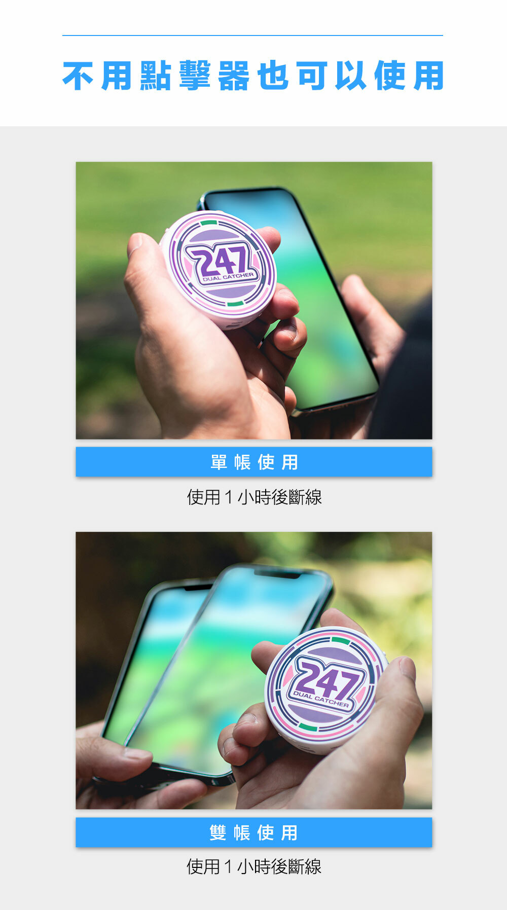 ▪ 突破手環1小時斷線限制,實現雙機全天抓寶