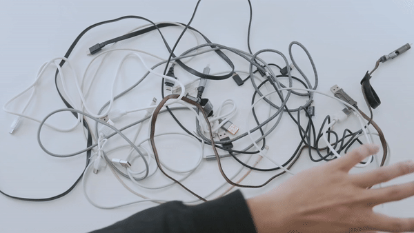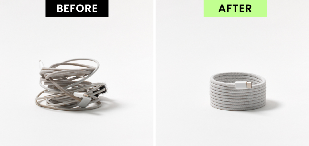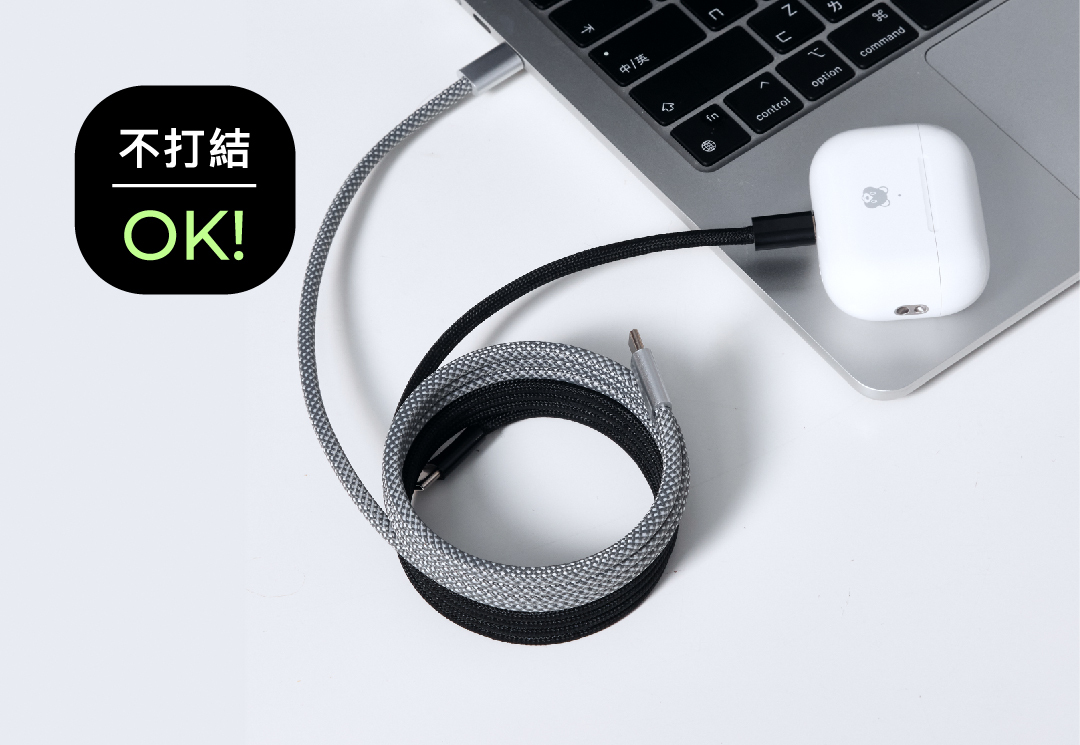 原廠充電線容易破損、打結,價格便宜的線又有電路與安全的高風險,床頭、辦公桌、包包裡,總是散落著各式各樣糾纏混亂的線材。即使下定決心要好好收納,也總是捲完就立刻散開!