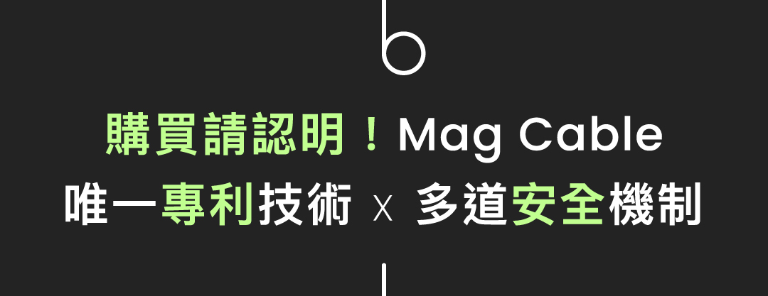 充電線就跟行動電源一樣,不能隨便亂買!Mag Cable 除了擁有專利磁吸技術,能做到最基本的「絕不打結」之外,從產品的材質、效能到安全保障,每一項都做到最好,要打破過去線材容易磨損、接觸不良、難以長久使用的困境,讓使用者能更安心的享受日常充電的便利。