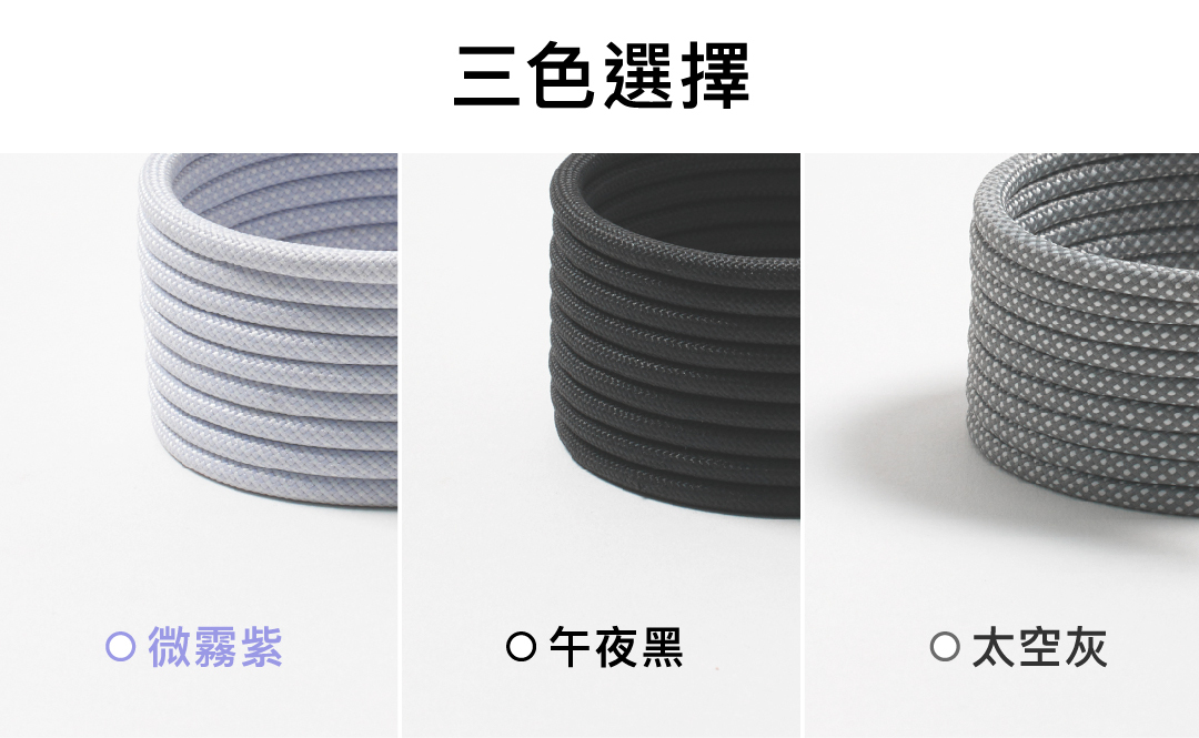 Mag Cable 一共分為「三層保護結構」,最外層的編織層就像線材的外套,使用柔軟的尼龍,相較於一般橡膠材質更具抗拉、抗扭轉、防撕裂的特性,能有效減少充電線扭結和纏繞問題,延長充電線的壽命。