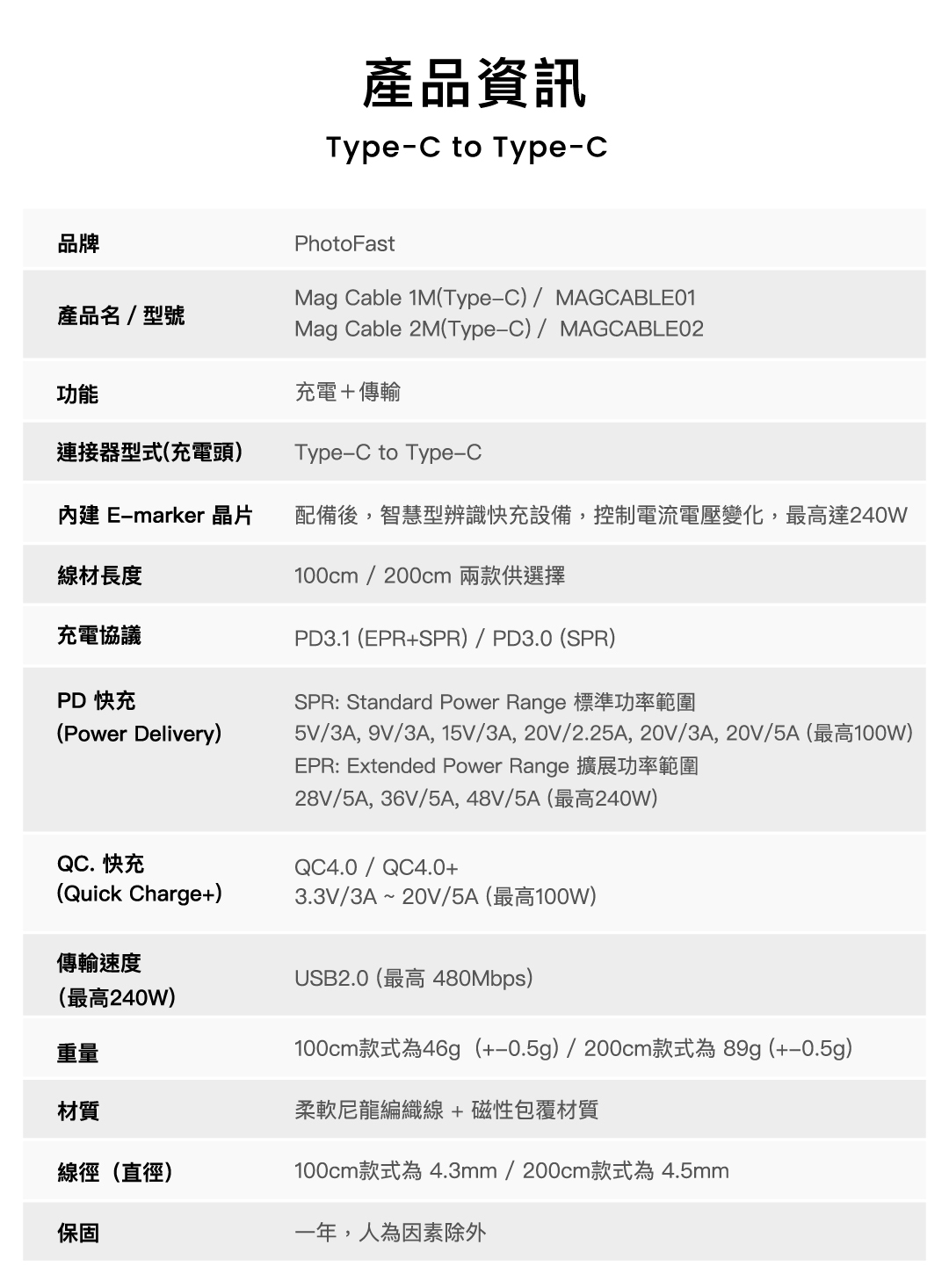Mag Cable 由生產全球第一支蘋果認證 iPhone 隨身碟的 PhotoFast 研發打造,除了是市面唯一具有專利磁吸技術的充電線,能夠做到永不打結外,更具備市面最高 240W 的高瓦數,與市面上其他來路不明的充電線不同,搭載 E-marker 晶片,確保充電時不過熱、過充和過放,確保充電安全無虞。