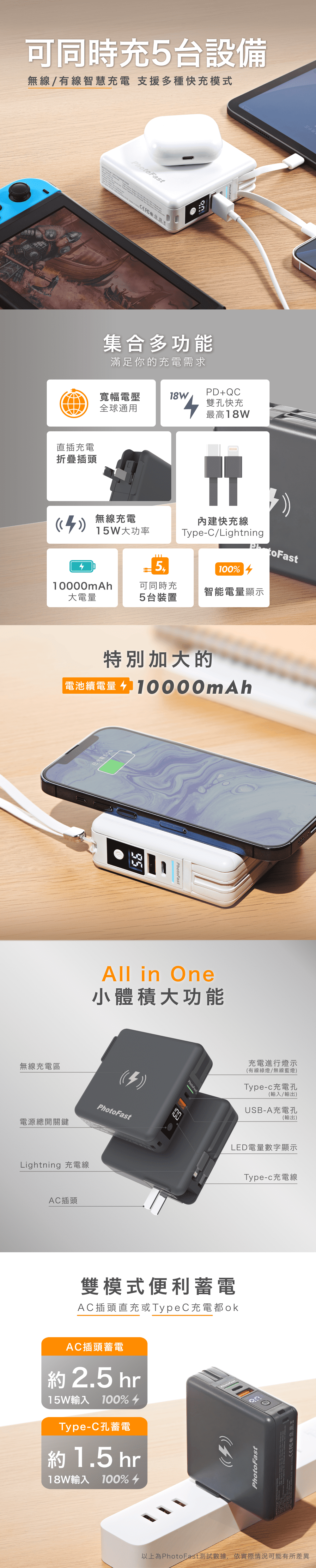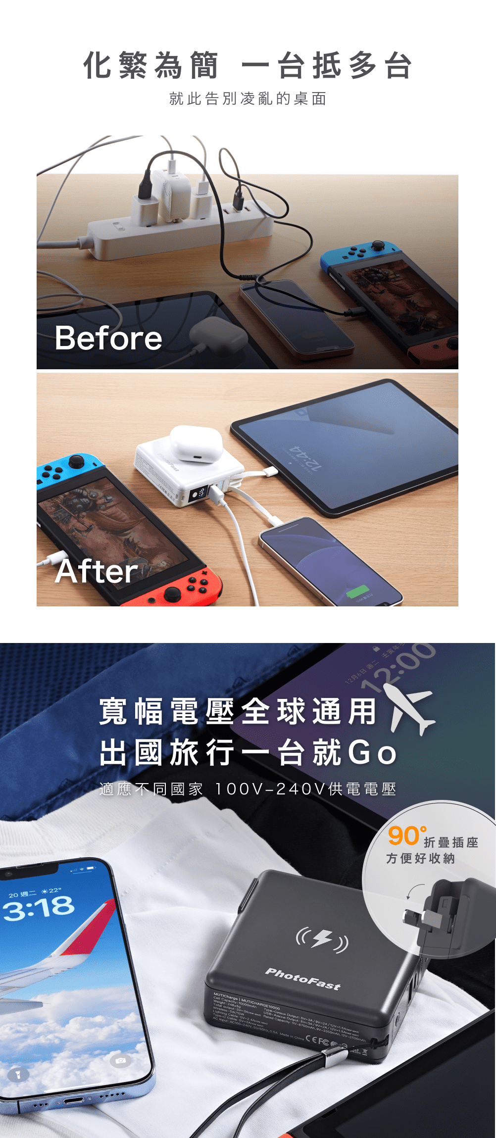 .行動電源+旅充+磁吸無線充多功能,一台搞定!