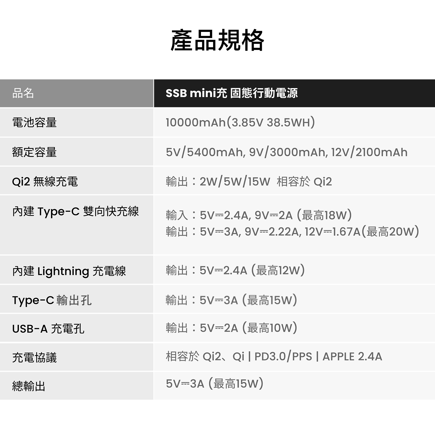 | 除了內建的兩條不同規格的充電線外,SSB mini充 還具有額外的 Type-C 快充插孔,以及無線快充的功能,最多可以同時充 5 個裝置,手機、手錶、相機、耳機或平板,外出旅遊一台就夠。 |